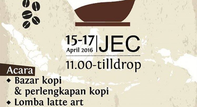 Pameran yang akan dibuka Jumat (15/4/2016) pukul 11.00 ini akan menghadirkan ragam kopi bagi pecintanya.Dalam event ini, penyelenggara akan menyediakan bazaar kopi serta perlengkapan kopi. Adapun lomba latte art, coffee talk dan live music yang akan menghibur pengunjungnya.